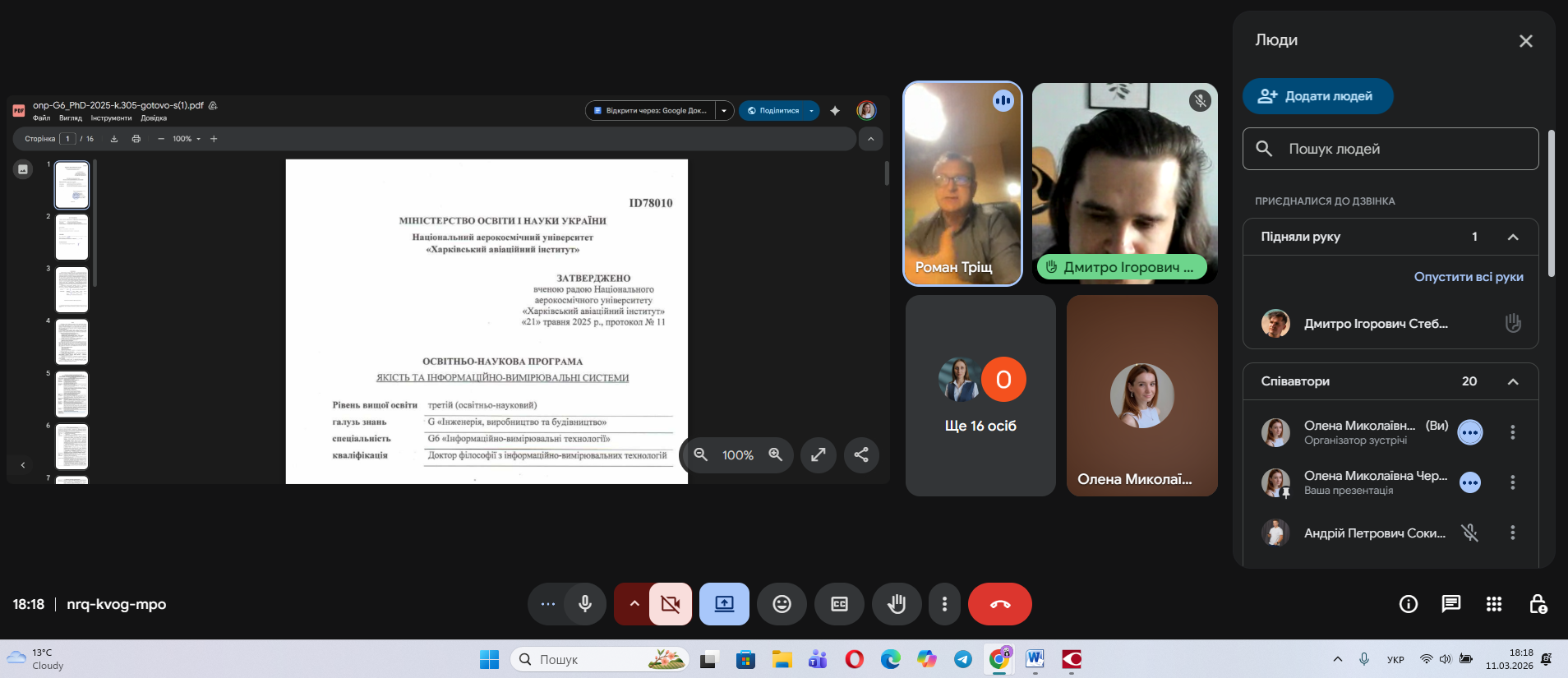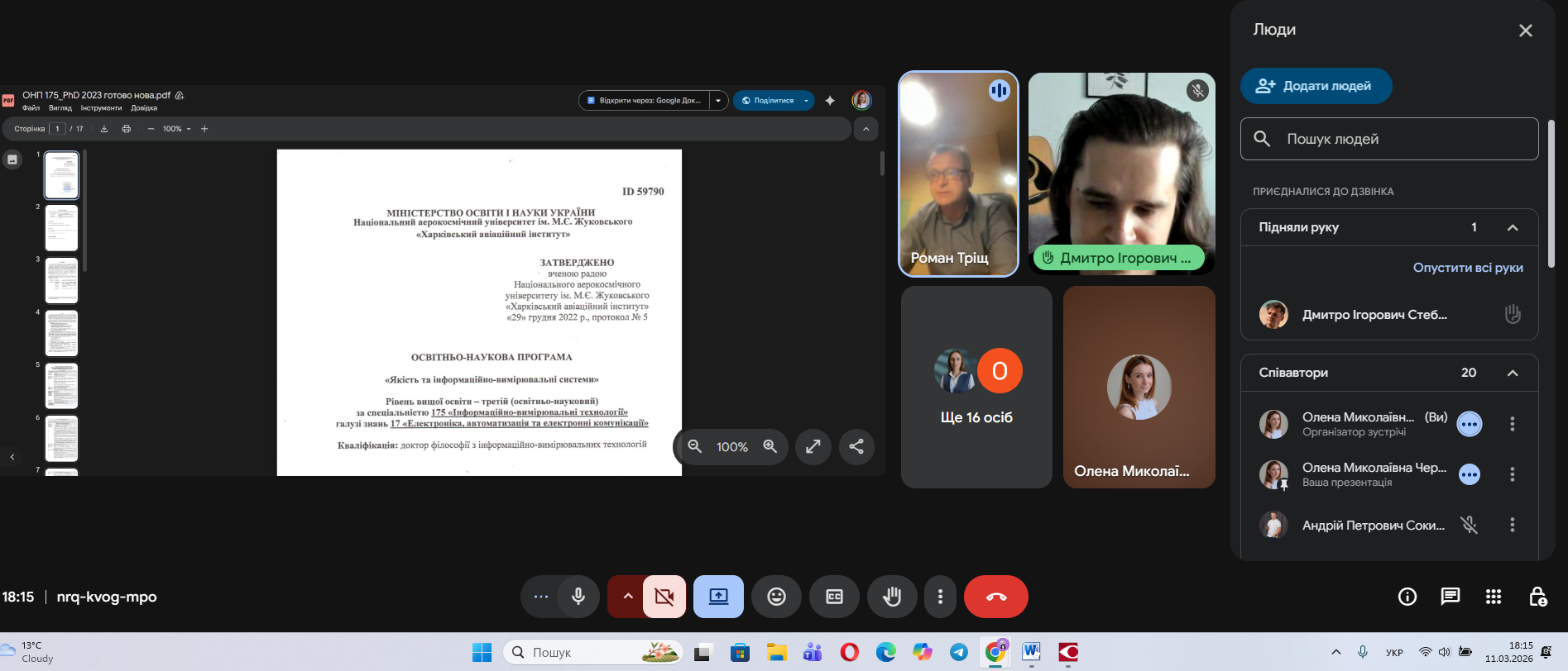 На кафедрі мехатроніки та електротехніки (305) відбулася робоча онлайн-зустріч гаранта освітньо-наукової програми третього рівня вищої освіти G6 «Якість та інформаційно-вимірювальні системи», завідувача кафедри, д.т.н., професора Романа ТРІЩА зі стейкхолдерами та роботодавцями, залученими до формування та реалізації програми підготовки докторів філософії.