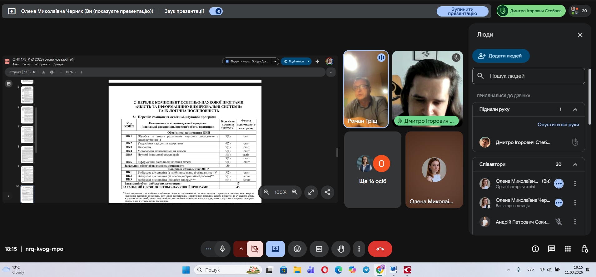 Зустріч засвідчила ефективність партнерської взаємодії між академічним середовищем і зовнішніми зацікавленими сторонами як важливої складової забезпечення якості підготовки докторів філософії та сталого розвитку освітньо-наукової програми.