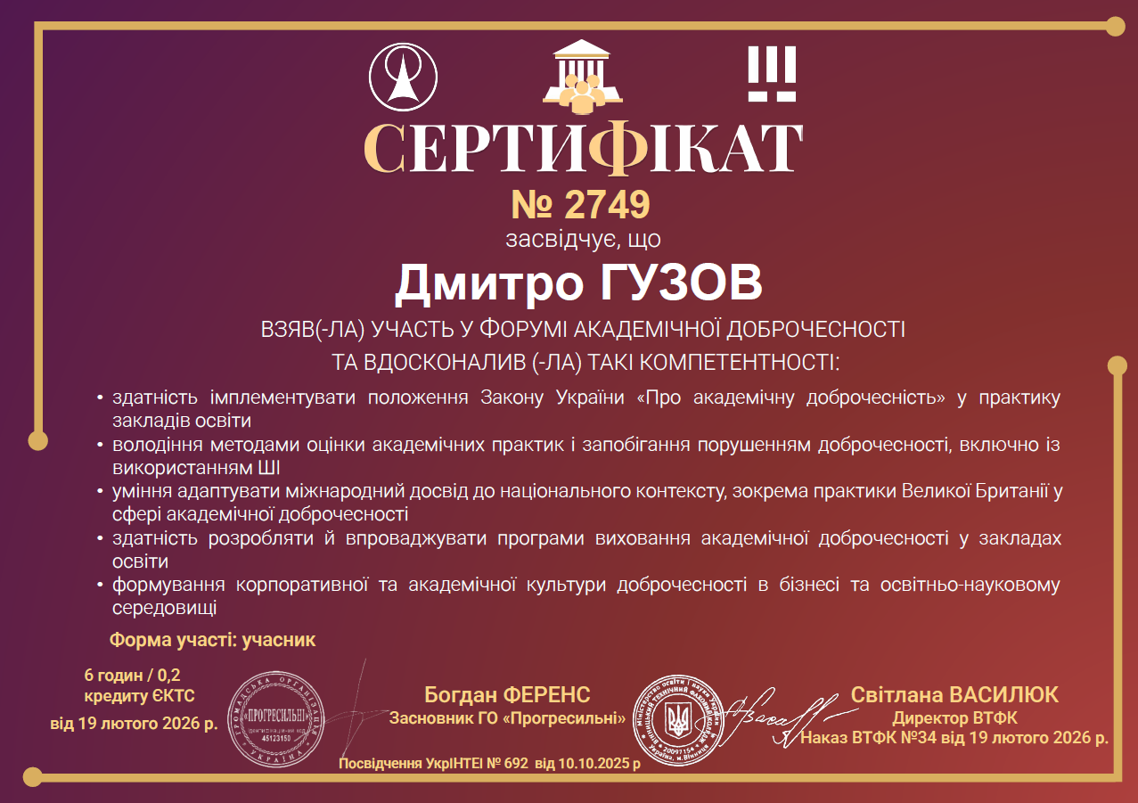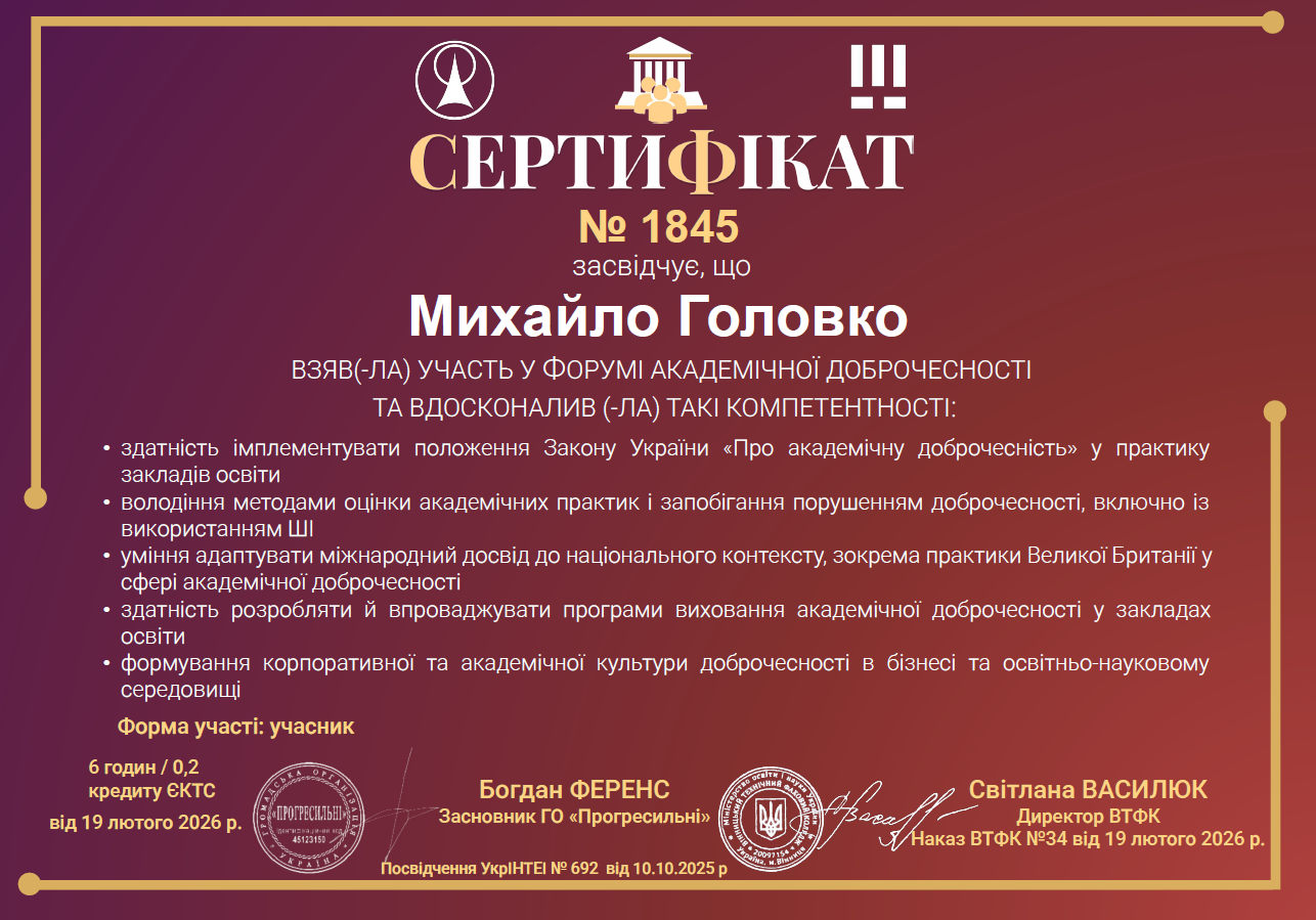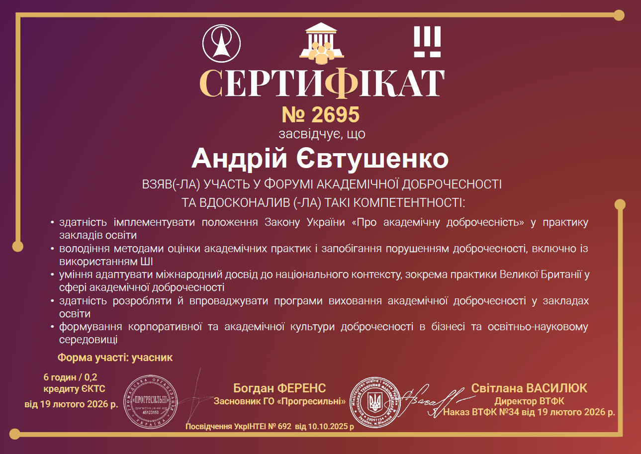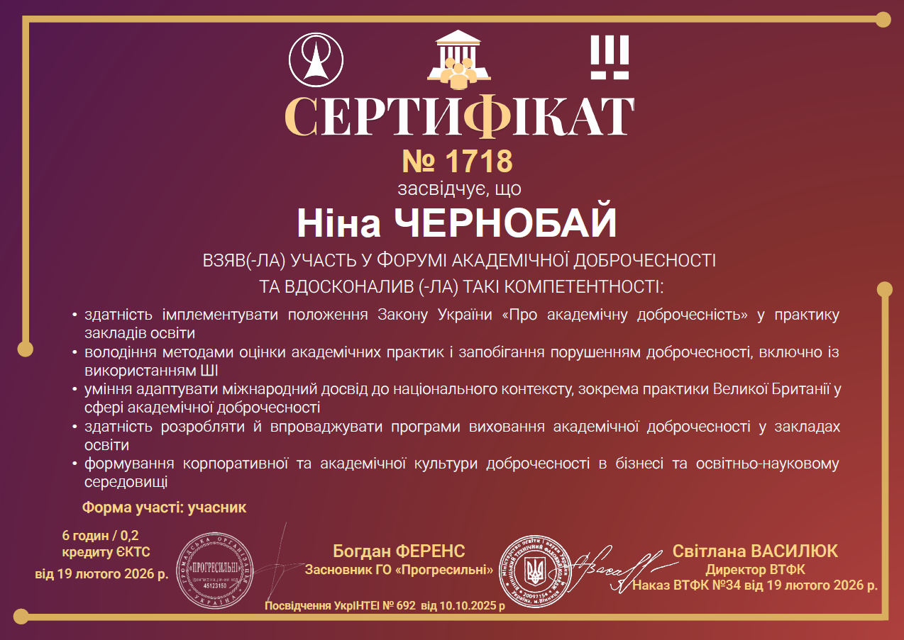 Академічна доброчесність сприяє створенню дружнього та довірливого середовища для здобувачів і викладачів.