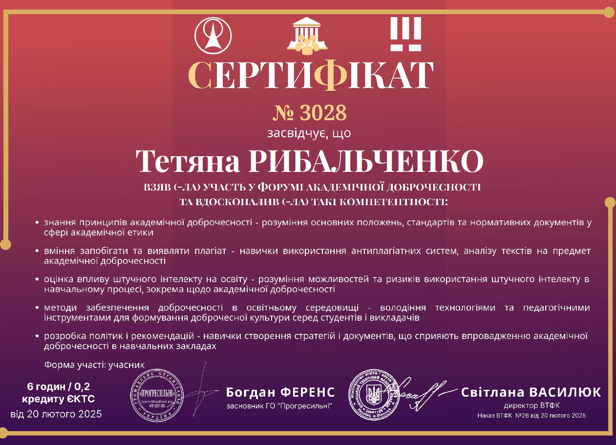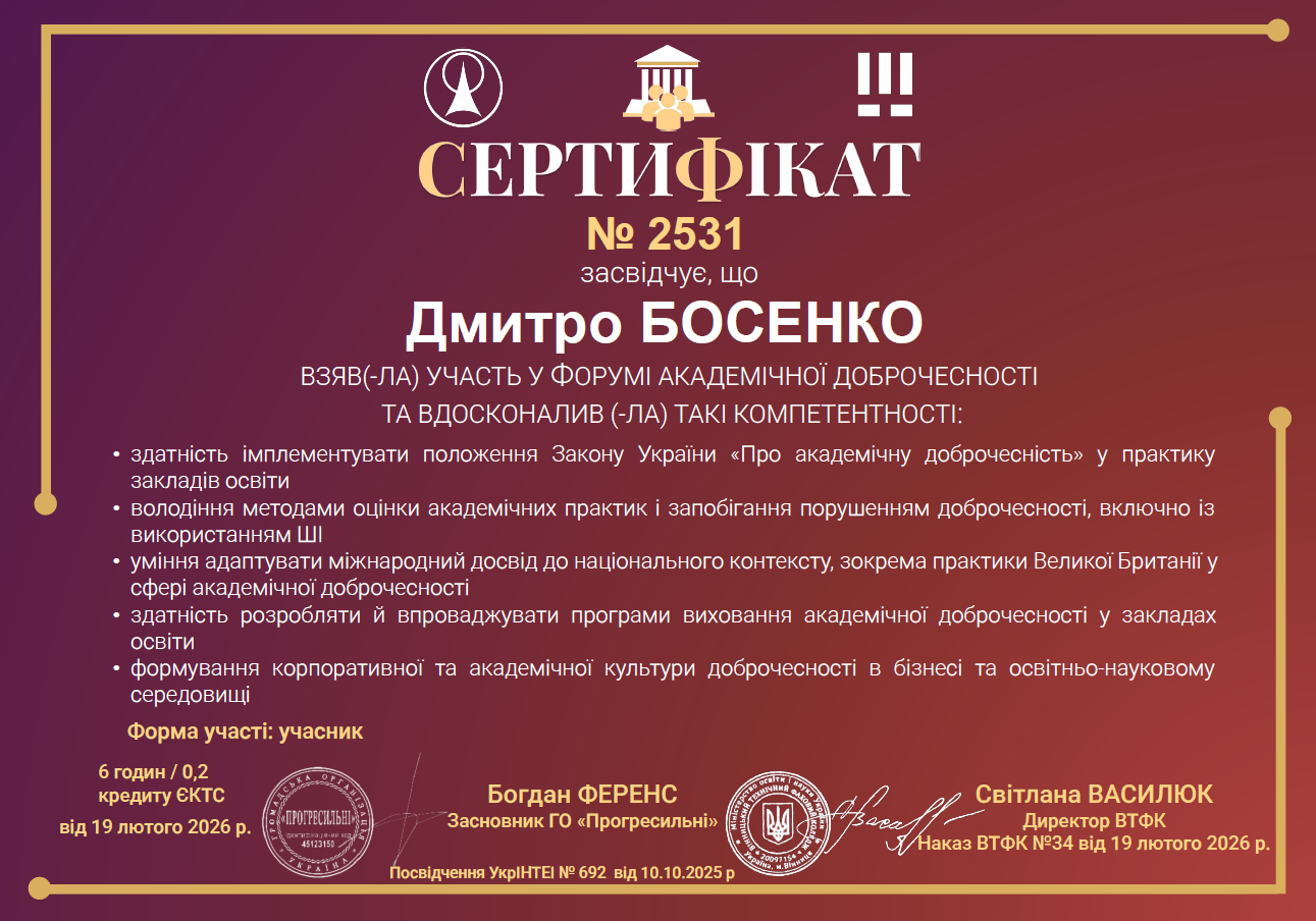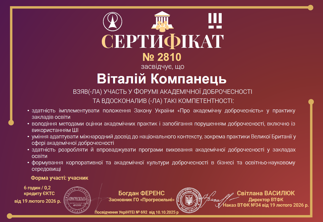 Академічна доброчесність сприяє створенню дружнього та довірливого середовища для здобувачів і викладачів.
