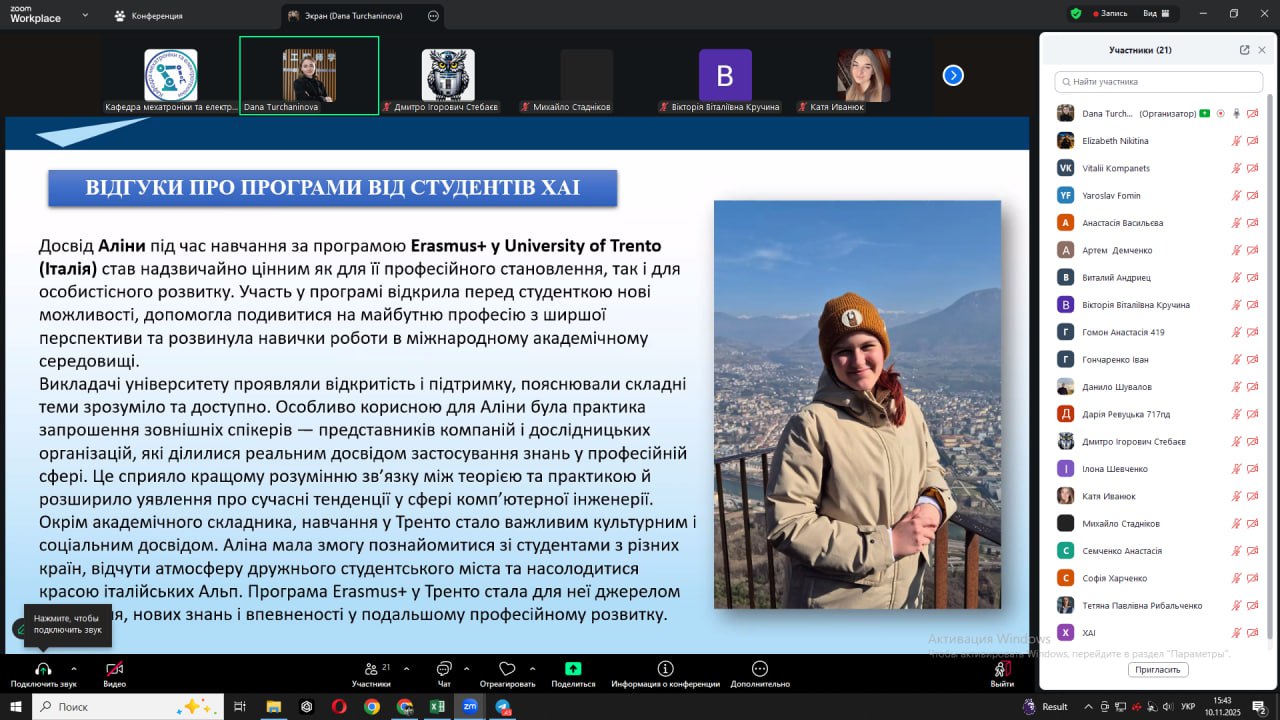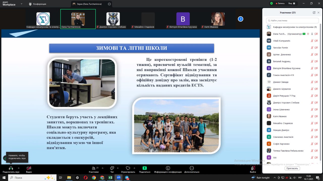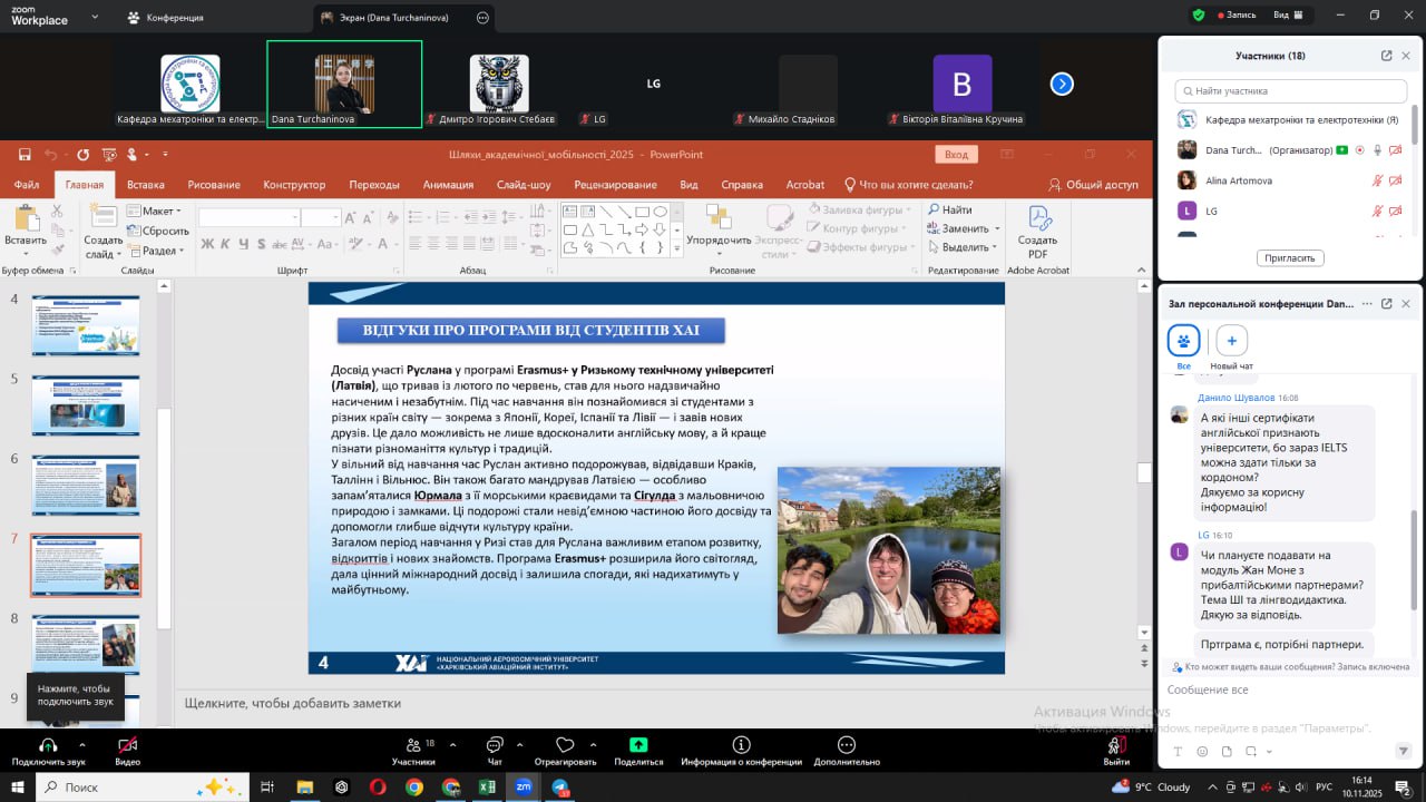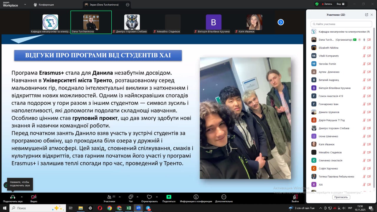 Під час зустрічі обговорювалися питання: участі у програмах Erasmus+, Horizon Europe, Marie Skłodowska-Curie Actions; DAD; оформлення документів для подання на академічну мобільність; підготовки дослідницьких планів і рекомендаційних листів; мовних та культурних аспектів перебування в університетах-партнерах.