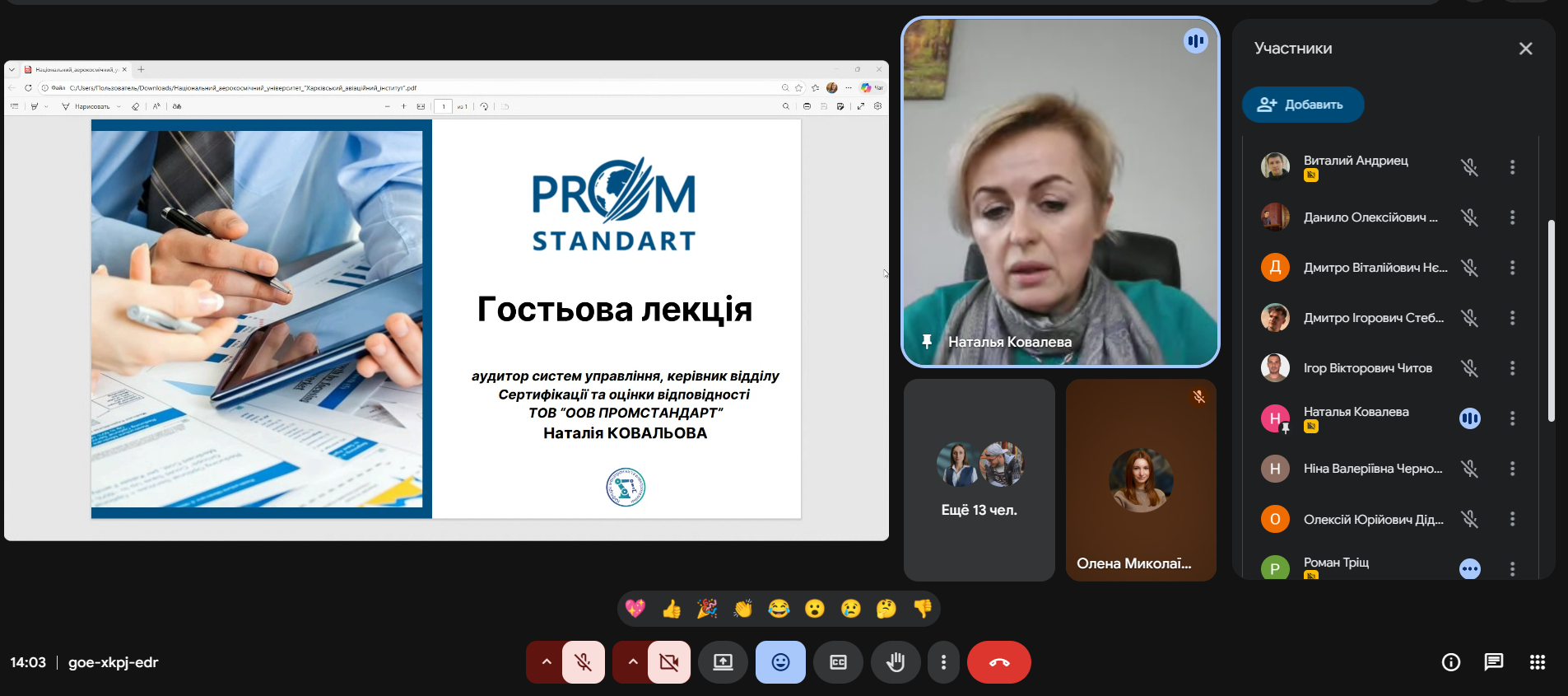 Для здобувачів 1-4 курсів третього (освітньо-наукового) рівня було проведено гостьову лекцію на тему «Системи управління якістю за ISO 9001». До участі було запрошено аудитора систем управління, керівницю відділку сертифікації та оцінки відповідності ТОВ "ООВ ПРОМСТАНДАРТ" Наталія КОВАЛЬОВА.