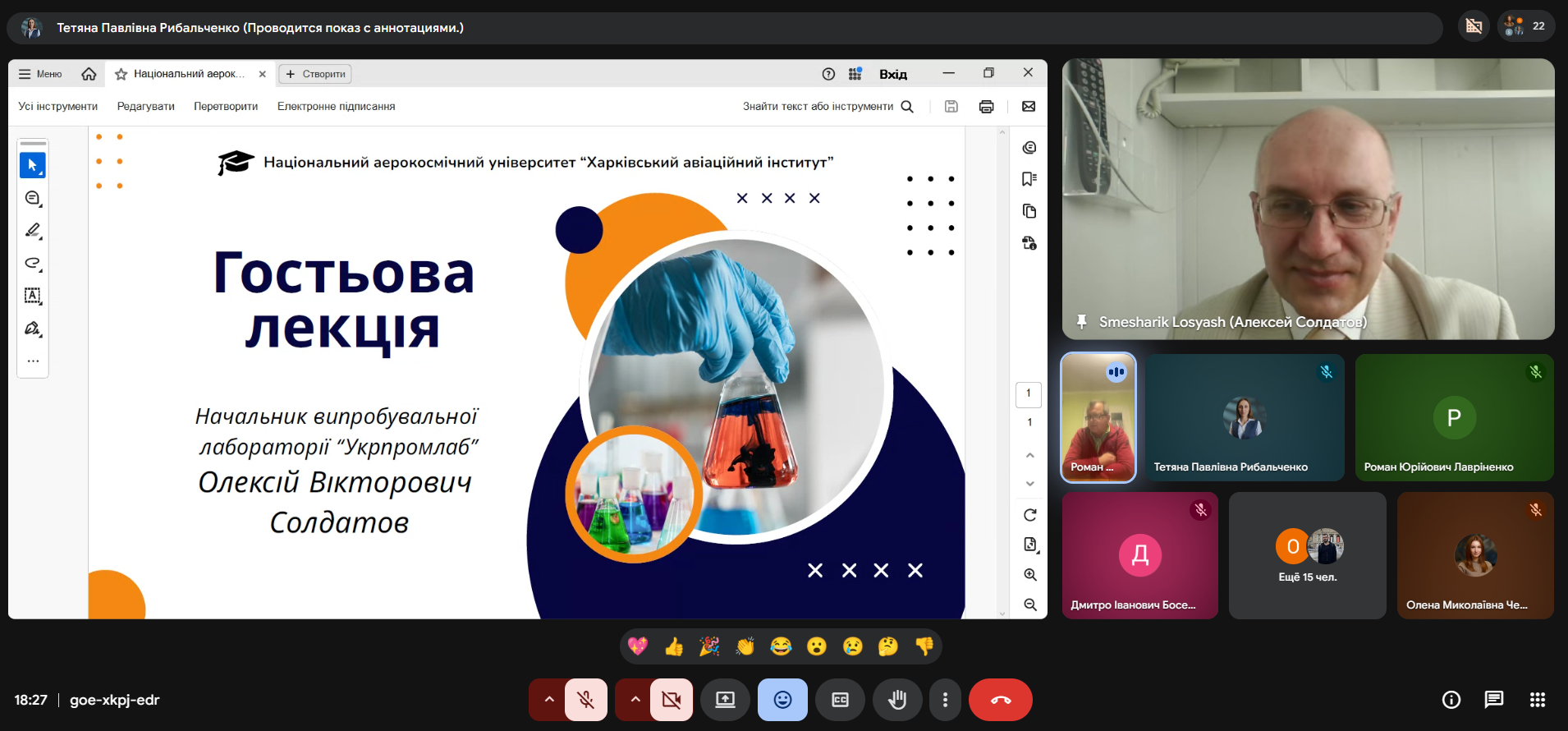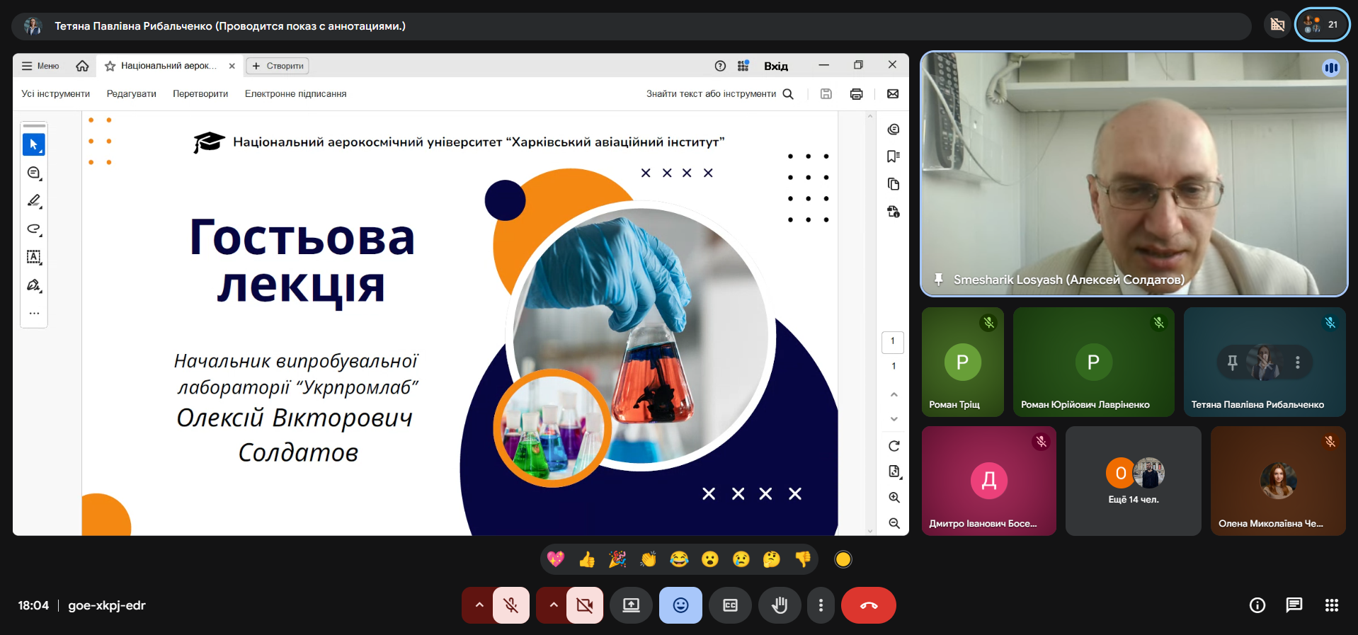 Для здобувачів 1-4 курсів третього (освітньо-наукового) рівня було проведено гостьова лекція «Загальні вимоги до компетентності випробувальних лабораторій». До участі був запрошений Олексій СОЛДАТОВ — начальник випробувальної лабораторії «Укрпромлаб».