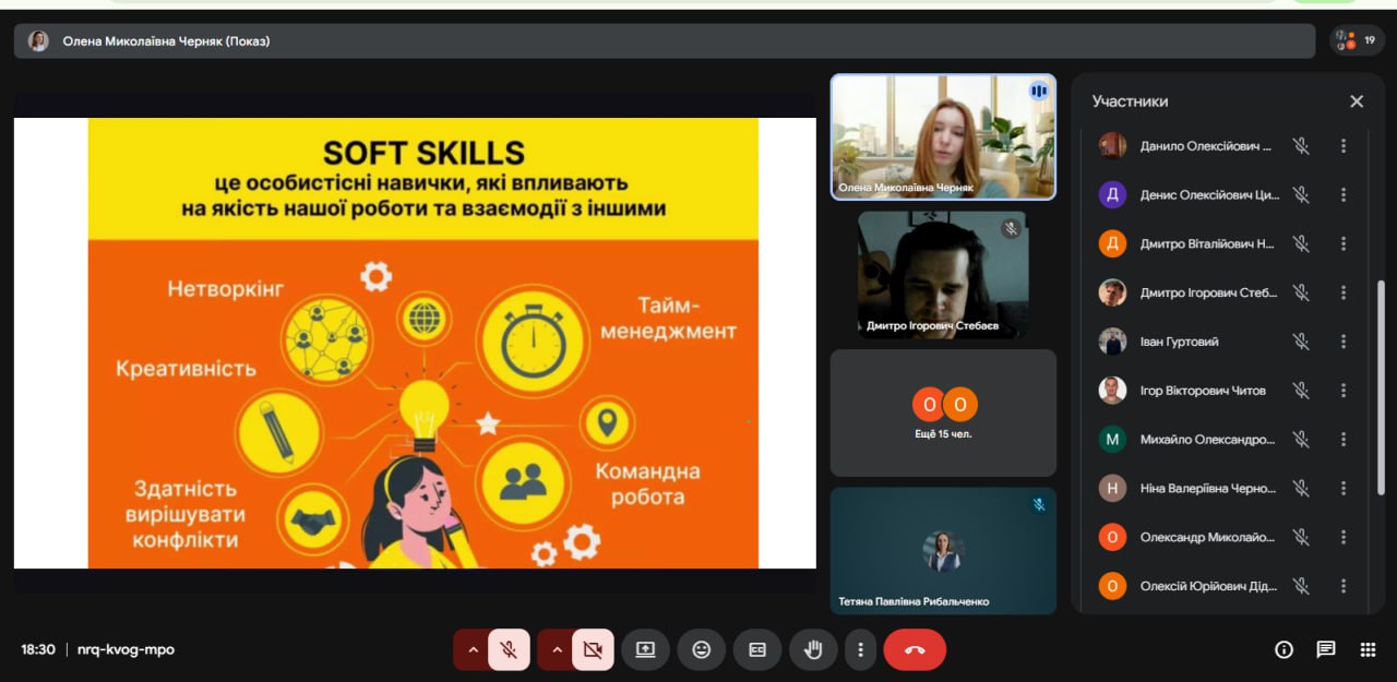 Особливу увагу було приділено формуванню навичок співпраці, лідерства, управління конфліктами та прийняття спільних рішень. Було підкреслено, що розвиток soft skills, зокрема навичок командної роботи, є важливим елементом професійної підготовки сучасного науковця та дослідника.
